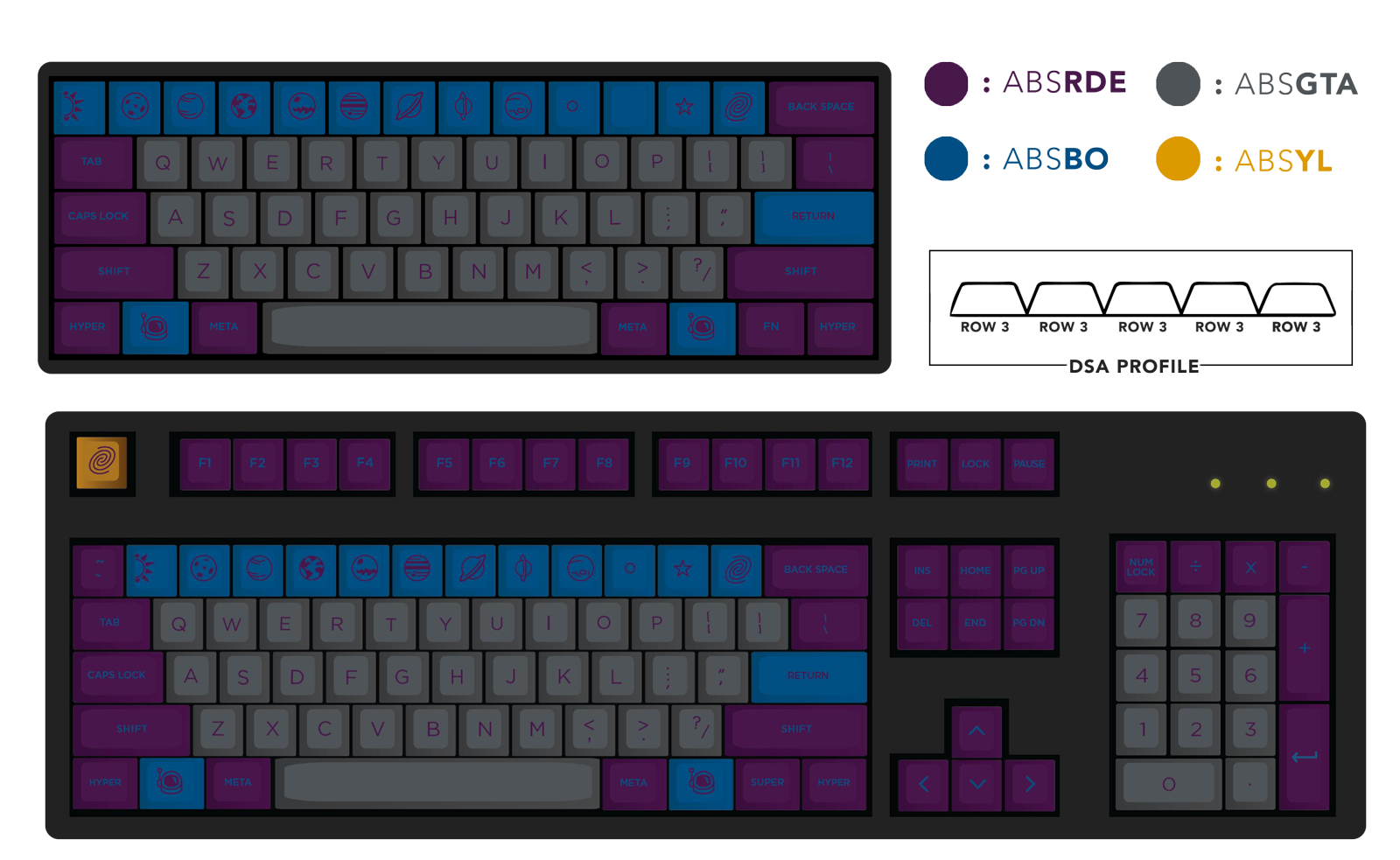 Deep Space is a keyset that was initially designed and ran as a group buy back in 2016 with Signature Plastics. I’m a believer in inclusivity so since it’s inception, Deep Space has been run in DSA profile, GMK Cherry profile and the new DCX profile from Drop.
